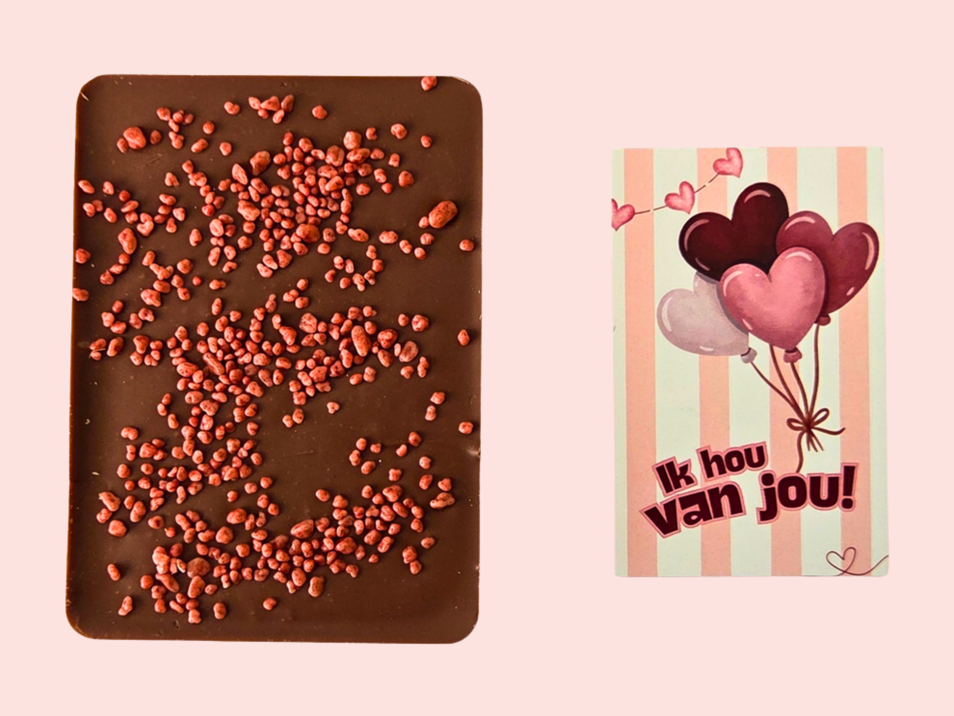 Een heerlijk melk chocolade reep met een lief berichtje erin verstopt. Deze Break Me bevat een kaartje met een 'Ik hou van jou!' tekst erop. De reep is getopt met aardbeien knetter chocolade. Leuk om te geven, fantastisch om te krijgen.